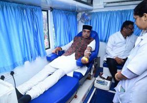 प्रधानमंत्री नरेंद्र मोदी के जन्म-दिवस पर मंत्री सारंग ने किया रक्तदान