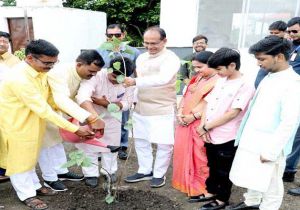 मुख्यमंत्री चौहान ने महुआ, पीपल और गुलमोहर के पौधे रोपे