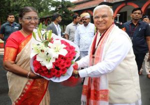 राष्ट्रपति श्रीमती मुर्मु के राजभवन आगमन पर राज्यपाल पटेल ने किया स्वागत