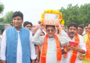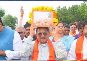 संत शिरोमणि गुरूदेव रविदास जी की समरसता यात्रा का केबिनेट मंत्री पटेल ने चरण पादुका का पूजन कर किया स्वागत