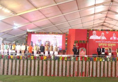 14 Dec, 2023 10:35 AM IST | SAMWADINDIA.INमोतीलाल नेहरू स्टेडियम में हुआ भव्य शपथ समारोह केंद्रीय मंत्री सहित कई राज्यों के मुख्यमंत्री हुए...