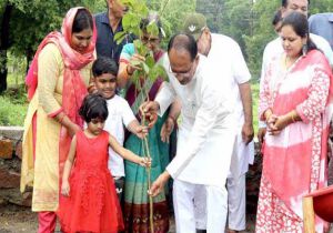 मुख्यमंत्री चौहान ने पीपल, करंज और महुआ के पौधे रोपे
