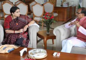 केंद्रीय मंत्री स्मृति इरानी पहुंचीं भोपाल, सीएम शिवराज से की मुलाकात
