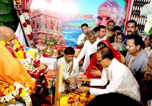 मुख्यमंत्री चौहान ने करूणाधाम आश्रम पहुँच कर स्वामी शांडिल्य महाराज से आशीर्वाद लिया