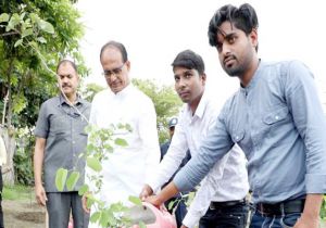 मुख्यमंत्री चौहान ने नीम, खिरनी और कचनार के पौधे रोपे