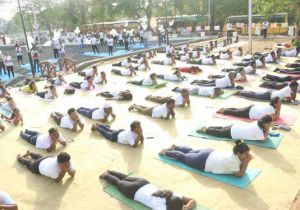 जबलपुर की मदनमहल पहाड़ी पर आकाश और वायु तत्व पर हुई योग क्रियाएँ