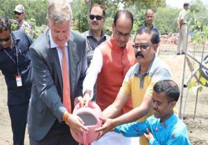 मुख्यमंत्री चौहान के साथ यूनाइटेड नेशंस एनवायरमेंट प्रोग्राम के कार्यकारी निदेशक एरिक सॉल्हेम ने लगाए पौधे