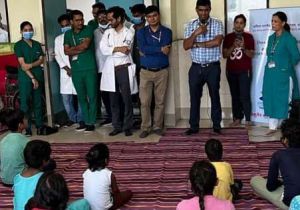 आयुष और बाल रोग विभाग द्वारा बच्चों के लिए किया योग सत्र का आयोजन