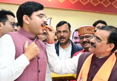 भाजपा की प्रचंड जीत पर भाजपा कार्यालय में मना जश्न, पार्टी नेताओं ने कहा मध्यप्रदेश में चला मोदी मैजिक