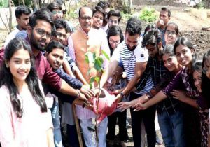 मुख्यमंत्री चौहान के साथ तूर्यनाद संस्था के सदस्यों ने किया पौध-रोपण