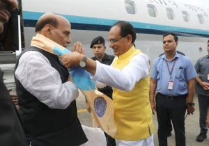 मुख्यमंत्री चौहान ने केन्द्रीय रक्षा मंत्री सिंह की विमानतल पर की अगवानी