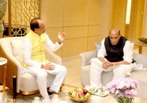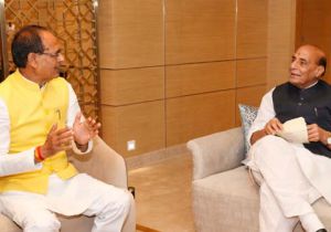 केंद्रीय रक्षा मंत्री राजनाथ सिंह से मुख्यमंत्री चौहान ने की चर्चा