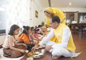 मुख्यमंत्री निवास में रामनवमी पर हुआ कन्या भोज