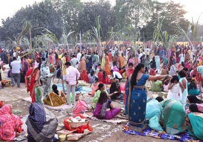 भोपाल में रीगल टाउन अवधपुरी में व्रतियों ने उगते हुए सूर्य को दिया अर्घ्य