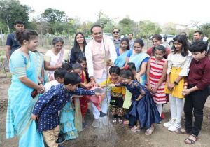 मुख्यमंत्री चौहान के साथ स्कूली बच्चों ने लगाए पौधे