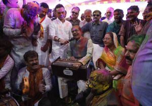 मुख्यमंत्री निवास में बिखरे होली के रंग