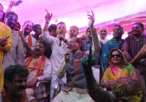मुख्यमंत्री निवास में बिखरे होली के रंग
