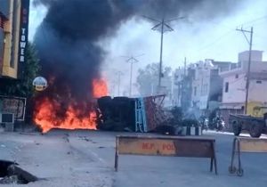 टीकमगढ़ में गेहूं से भरे ट्रक में लगी आग
