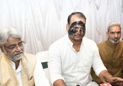 युवा कांग्रेस नेता ने मीडिया के सामने किया मुंह काला, अपने ही आप पोती कालिख