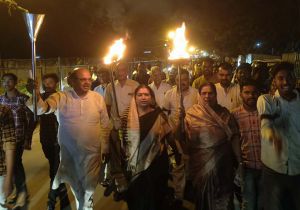 जतारा में कांग्रेस ने निकाला मशाल जुलूस