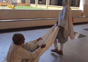 ग्वालियर के अस्पताल में मरीज को चादर पर बैठाकर घसीटकर ले जाने का मामला