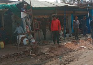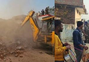 ढोल बजवाकर पुलिस ने मकानों पर चलाया बुलडोजर