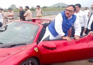 पीथमपुर में 350 किमी की गति से दौड़ने वाली कार में मंत्री महेंद्रनाथ पांडेय ने किया सफर