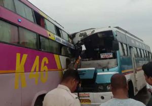 सेंधवा में दो बसों में टक्कर, 10 से ज्यादा यात्री घायल, इलाज जारी