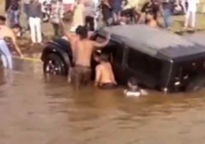 स्टंट करते हुए थार चोरल डैम तालाब में समाई