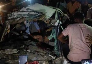 AB रोड पर बस और कार की टक्कर, 4 लोगों की मौत, 4 घायल