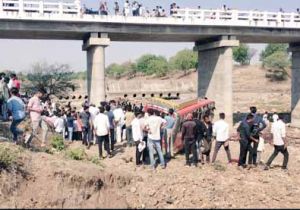 खरगोन में बड़ा हादसा, पुल से नीचे जा गिरी बस, 15 लोगों की मौत, कई घायल
