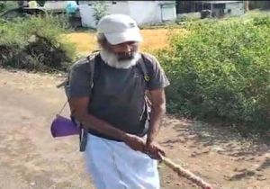आंखे नही होने के बावजूद मन की आँखों से लाठी के सहारे कर रहे नर्मदा जी की 28 सो किलोमीटर की पेदल परिक्रमा