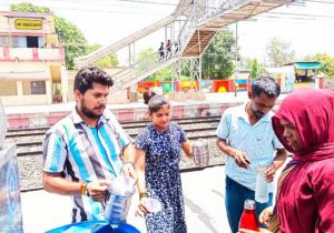 यात्री ट्रेन के रुकते ही पानी लेकर दौड़ पड़ते हैं युवा टीम के सदस्य