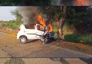 पेड़ से टकराई ऑल्टो कार और लग गई आग, 4 लोग जिंदा जल गए