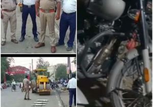 अमानक साइलेंसर को चौराहे पर किया नष्ट