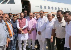 हैलीपैड पर मुख्यमंत्री का जनप्रतिनिधियों एवं प्रषासनिक अधिकारियों ने पुष्प गुच्छ देकर किया स्वागत