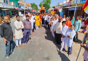 महावीर जयंती के अवसर पर भगवान महावीर स्वामी की शोभायात्रा समस्त ग्राम जैन समाज भी शामिल