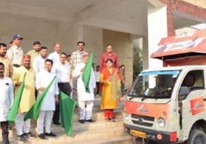 सरकार के तीन वर्ष की उपलंब्धियो के विकास रथ को विधायक सिंगरौली ने हरी झण्डी दिखा कर किया रवाना