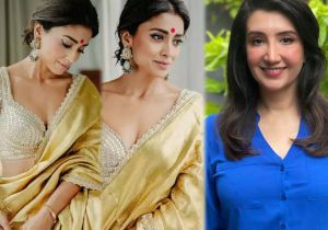 गोल्डन साड़ी पहन श्रिया सरन दिखीं बेहद खूबसूरत, स्टाइलिश ब्लाउज पर अटकी फैंस की निगाहें