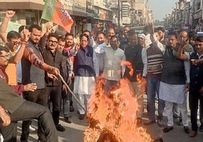 उपराष्ट्रपति की मिमिक्री के विरोध में भाजपा नेताओं ने राहुल गांधी का पुतला फूंका