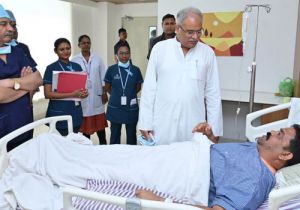 घायल मंडावी का कुशलक्षेम जानने पहुंचे मुख्यमंत्री बघेल