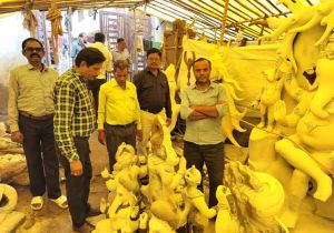 निगम दस्ते ने गणेश प्रतिमा निर्माण स्थल का निरीक्षण कर मूर्तिकारों को दी समझाईश