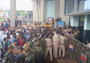 बैरिकेड तोड़कर रेलवे स्टेशन के अंदर घूसे कांग्रेसी, पुलिस के साथ हुई झूमाझटकी