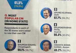 मुख्यमंत्री भूपेश बघेल देश के दूसरे सबसे लोकप्रिय मुख्यमंत्री, 59.1 प्रतिशत लोगों ने उनके काम को सराहा