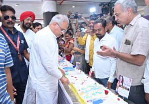 मुख्यमंत्री बघेल ने मल्टीलेवल पार्किंग में डेढ़ सौ फीट की लंबाई वाला केक काटा