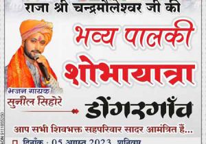 5 Aug, 2023 11:16 AM IST | SAMWADINDIA.INडोंगरगांव शनिवार 5 अगस्त को भगवान चंद्रमौलेश्वर महाकाल की पालकी यात्रा हनुमान मंदिर से दोपहर को...