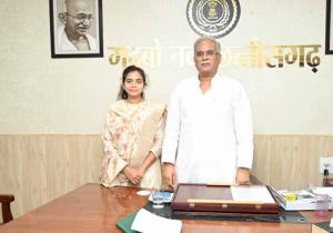 मुख्यमंत्री से राज्यगीत के रचयिता डॉ. नरेन्द्र वर्मा पर शोध करने वाली पहली शोधार्थी चन्दन बाला ने की सौजन्य मुलाकात