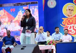गरियाबंद की इंद्राणी साहू ने भेंट-मुलाकात कार्यक्रम में मोर सपना के छत्तीसगढ़ शीर्षक से कविता सुनाई