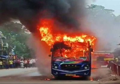 जगदलपुर में यात्री बस में लगी आग; चालक फरार