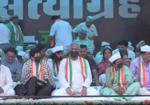 राहुल गांधी के समर्थन में कांग्रेस का मौन सत्याग्रह ,मुंंह पर काली पट्टी बांधकर पहुंचे सीएम बघेल